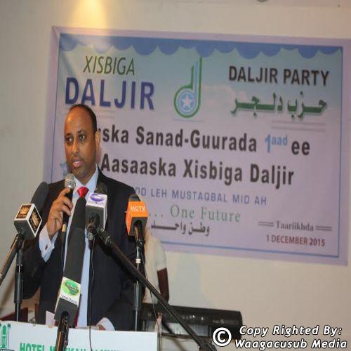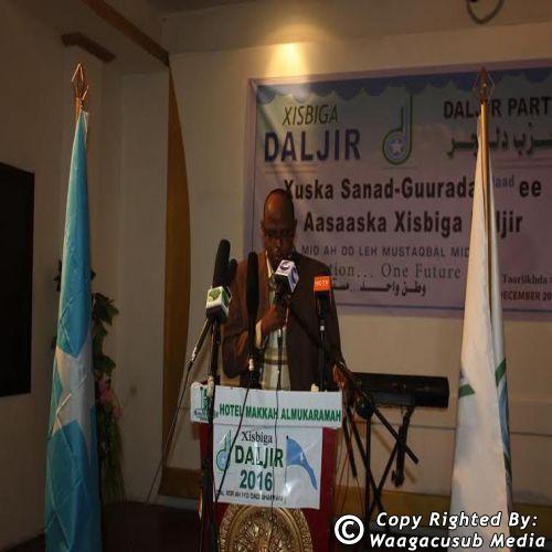 Munaasabadda ayey Mas’uuliyiinta Xisbiga Daljir ku soo bandhigeen waxqabadkoodii sanadkii tagey iyo qorshaha sanadka cususb ugu magac-darey "Sanadkii tagey sanadkii aasaas-dhigidda, sanadka soo socdana kii ambaqaadka”, waxeyna hoosta ka xariiqeen in xisbigu mudadii sanadka aheyd ee uu jirey ay u qabsoomeen hawlo waaweyn, uuna saaxada siyaasadda dalka ku soo kordhiyey horumar, halbauur iyo firfircooni. Mas’uuliyiinta Daljir oo ay ka mid ahaayeen Mudane Xasan Xaaji Ibraahim oo ku hadlayey magaca guddoomiyaha Xisbiga oo safar shaqo dalka dibadiisa ugu maqan, iyo xoghayaha guud mudane Axmed Macallin Fiqi, iyo duqa golaha dhexe ee xisbiga mudane Maxamuud Xasan Cali (Cadde Gaabow) waxey hadaladooda ku tibaaxeen in dalku siyaasad ahaan, dhaqaale ahaan iyo amni ahaanba uu meel adag marayo, loona baahan yahey isbedel dhab ah inuu dalka ka dhaco sanadka 2016, ayagoo baaqyo u direy maamulada Puntland iyo Galmudug in ay dirirta Gaalkacyo ku dhammeeyaan waanwaan iyo wadahadal, lagana gudbo marka kale in dadka Soomaaliyeed ee walaalaha la isku dhammeeyo, ama dhiigooda la isku daadiyo.