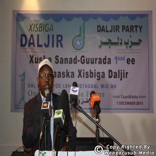 Xisbiga Daljir ayaa maanta munaasabad oo ugu dabaal-dagayey sanad guuradiisii koowaad ee ka soo wareegtey aasaaskii xisbiga, si weynna loo soo agaasimey ku qabtey magaalada Muqdisho, taasoo ay soo qeybgaleen dad bulshada magac ku leh oo ay ka mid ahaayeen odoyaasha dhaqanka, madaxda xisbiyada siyaasadeed, xildhibaanno barlamaanka federaalka ah, wasiiroo dawlad goboleedka koofur galbeedka, xildhibaanno ka socdey Galmudug iyo ururada bulshada, fanaaniin iyo hey’adaha kala duwan ee xisbiga Daljir sida aasaasayaasha, golaha dhexe, garabyada haweenka iyo dhallinyarada, wakiilada gobolada dalka.